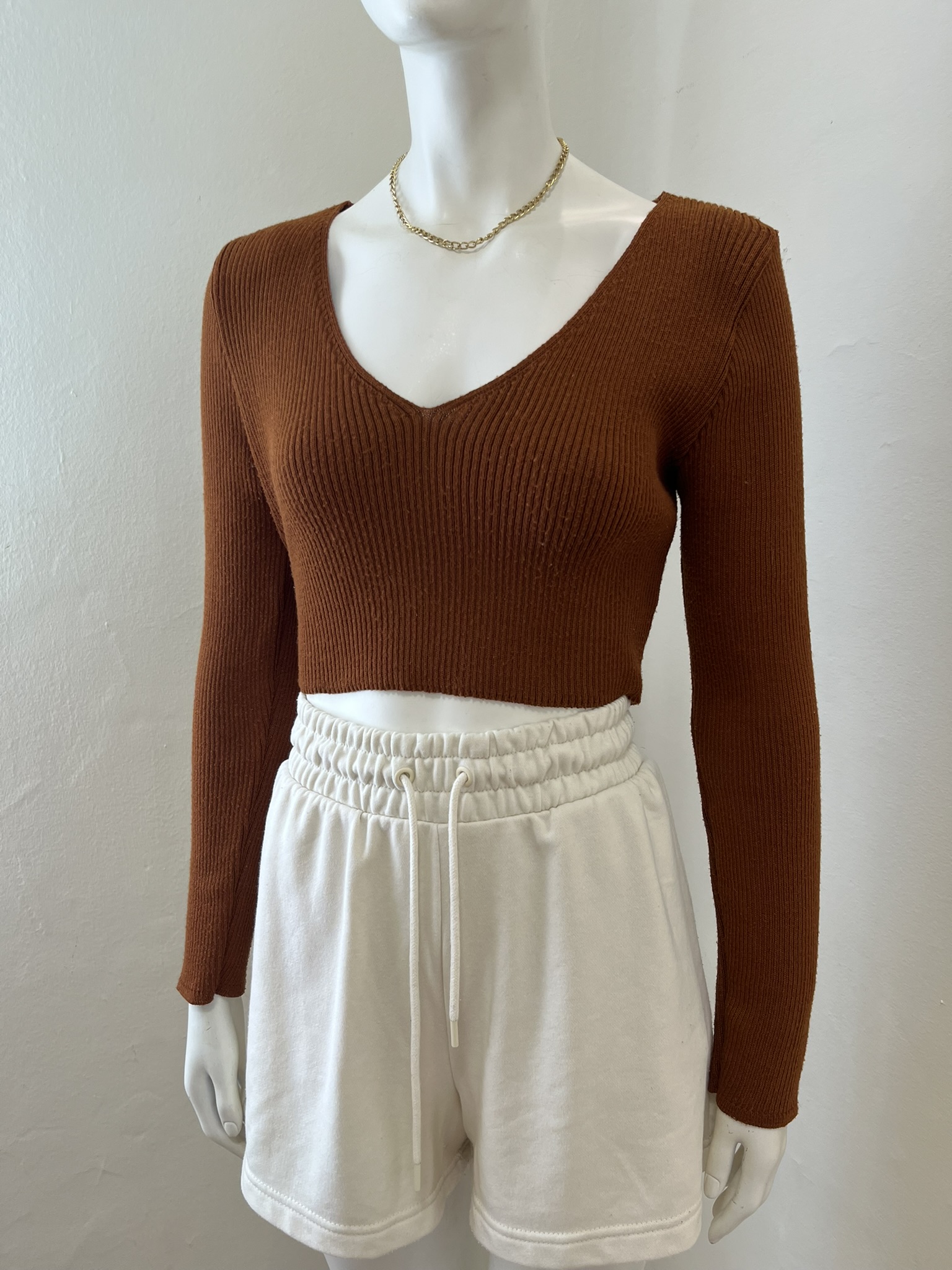Cropped Tricô Pool Terracota - M